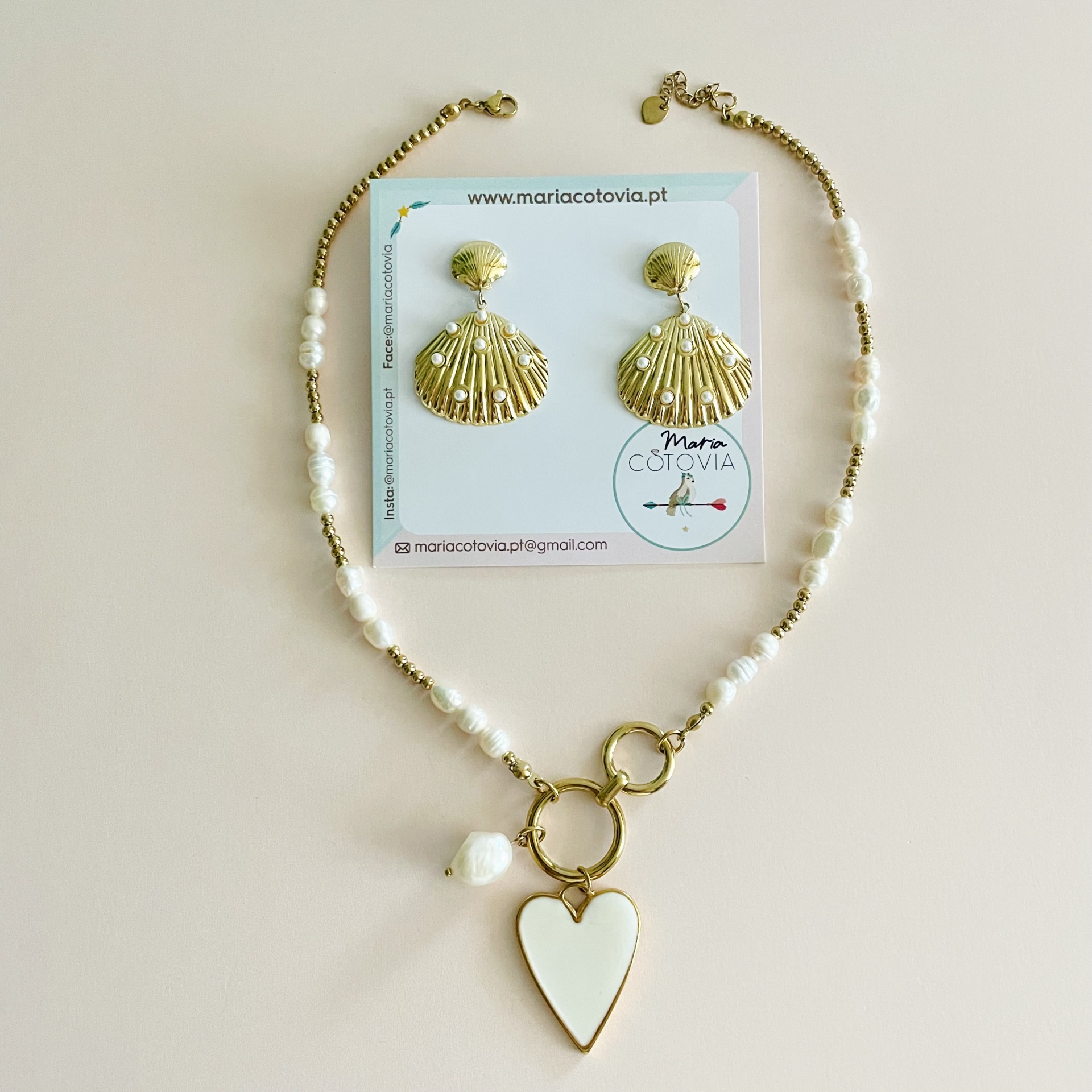 Home Colares Colar coração ou brincos concha Colar coração ou brincos concha Modelo Colar Brincos 8,00 € Desconto de %. IVA incluído. Comprar Contactar Adicionar à wishlist Colar mede 41cm + extensão (Pérolas água doce e aço) Brincos 4cm -Aço Por favor, escolha o artigo pretendido. Cada peça é vendida separadamente Tags colarAçoPérolasconchaCoração Partilhar