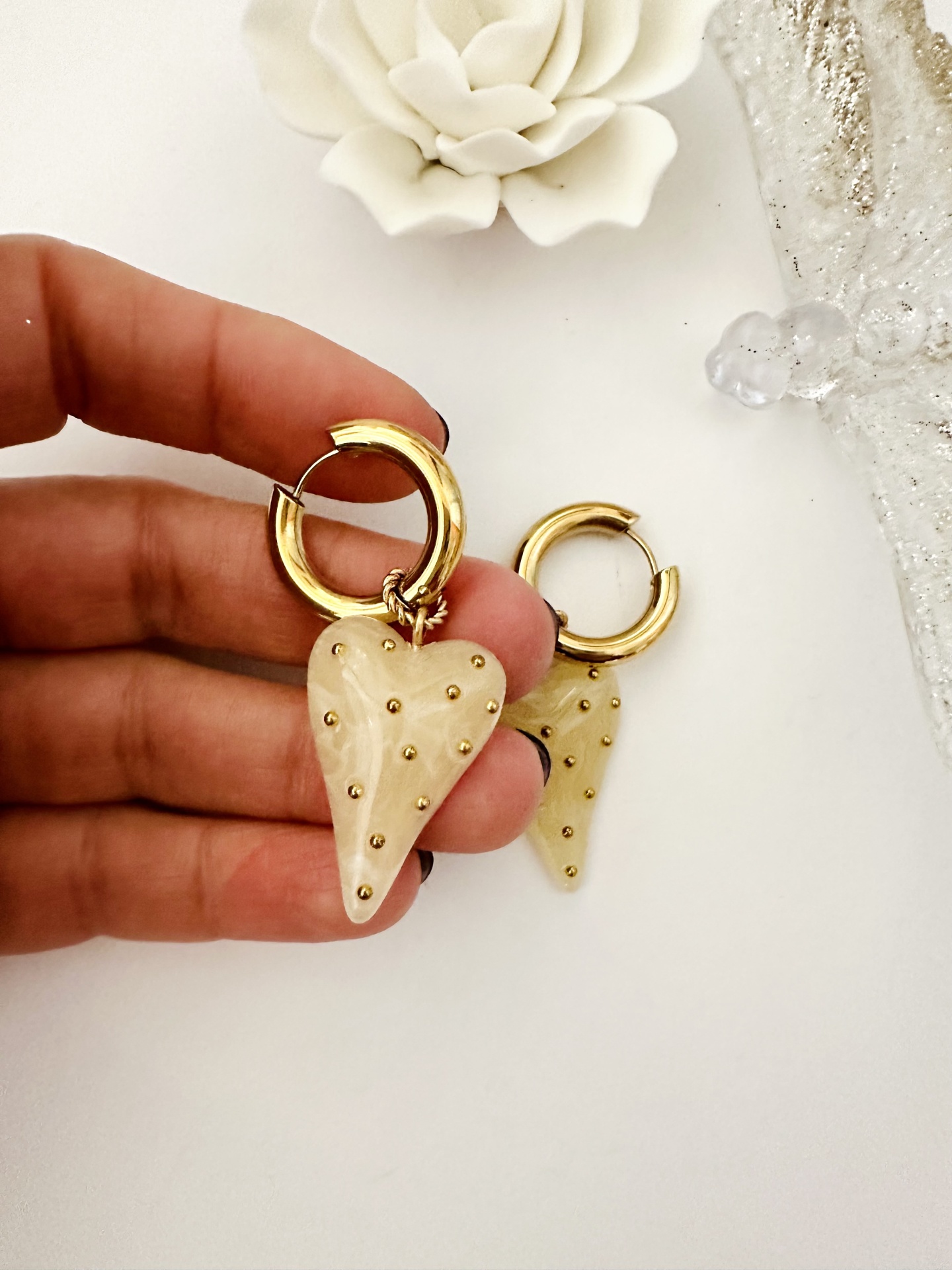 Home Brincos Brincos coração marfim #4* Brincos coração marfim #4* 8,99 € Desconto de %. IVA incluído. Comprar Contactar Adicionar à wishlist Medem 5.5cm no total Argola mede 2cm diâmetro e coração mede 3.5cm Aço Tags BrincosArgolasDouradasAçoCoração Partilhar