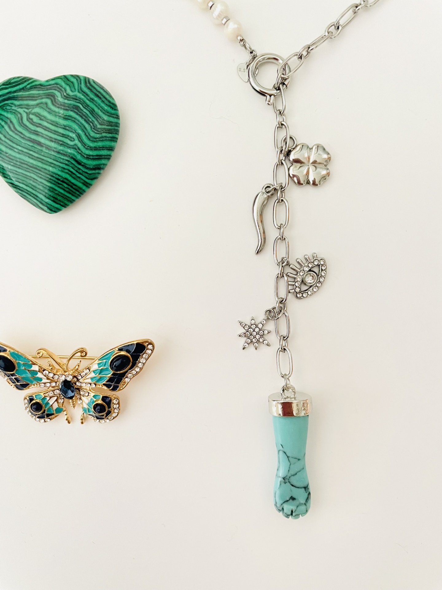 Home Colares Colar 5 Saimão ⭐ proteção #5 Colar 5 Saimão ⭐ proteção #5 Cor Azul Verde 14,00 € Desconto de %. IVA incluído. Comprar Contactar Adicionar à wishlist Mede 53cm Figa em pedra natural, corrente e restantes peças em aço Tags colarFigaOlhoProteçãoSorteEnergias5 SaimãoestrelaLuaTrevochifre Características Partilhar
