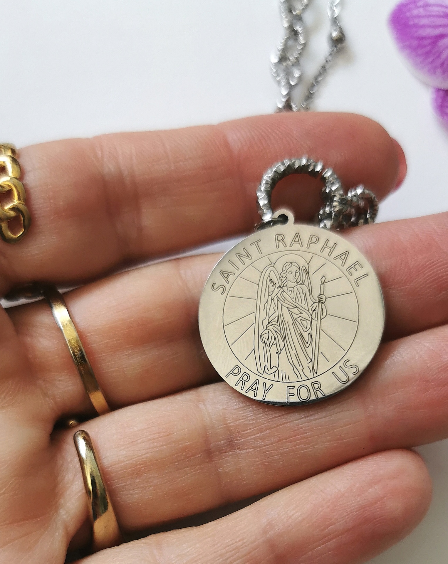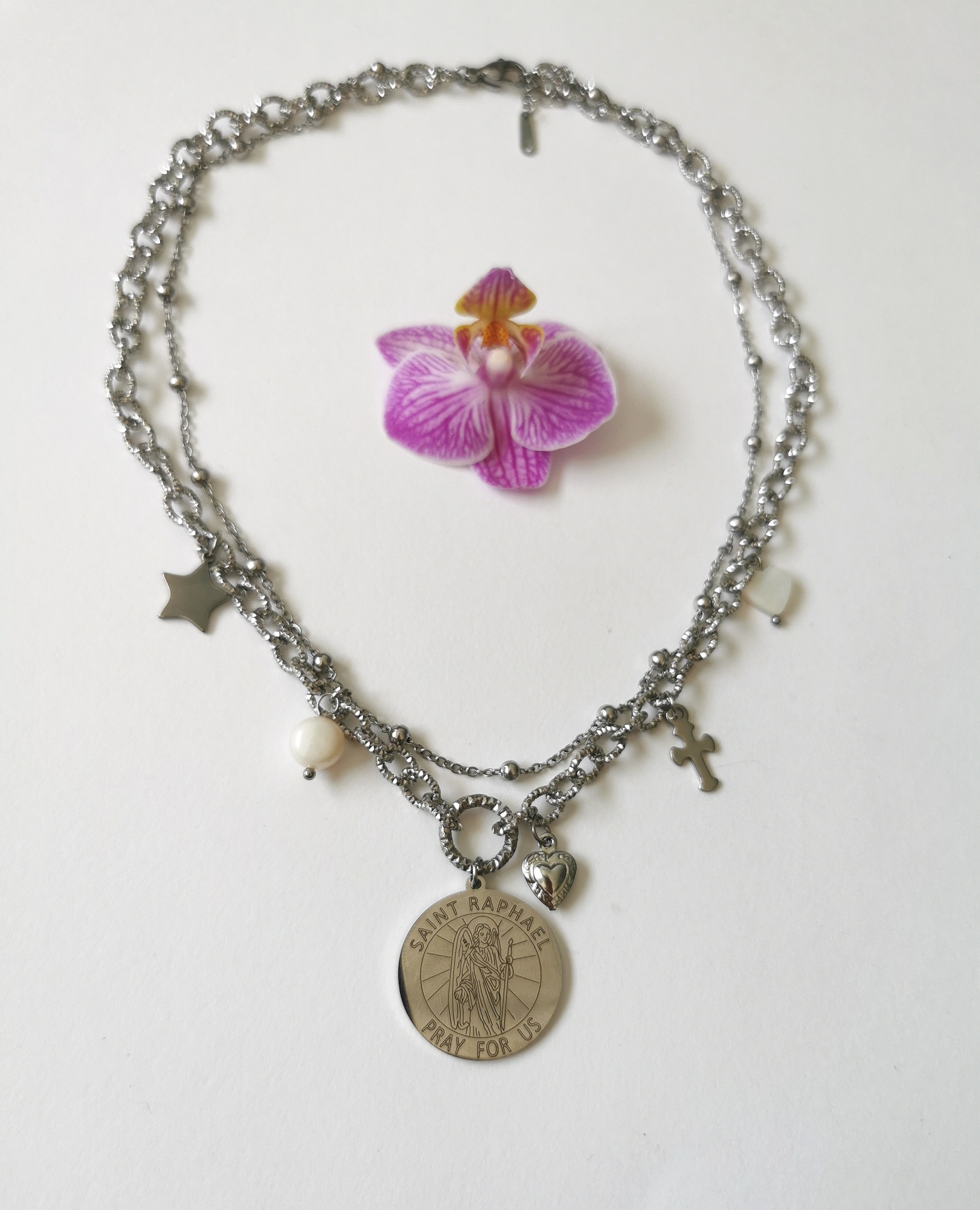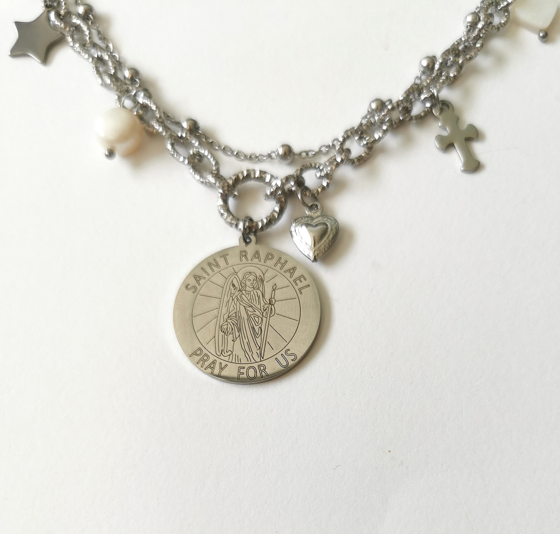 Home Colares Colar duplo Arcanjo S. Rafael, em prateado Colar duplo Arcanjo S. Rafael, em prateado 15,99 € Desconto de %. IVA incluído. Comprar Contactar Adicionar à wishlist Colar duplo com cerca de 43cm mais extensão Medalha mede 2.5 cm Aço, madrepérola e pérolas água doce Tags SantosPérolaArcanjoCruzcolar Partilhar