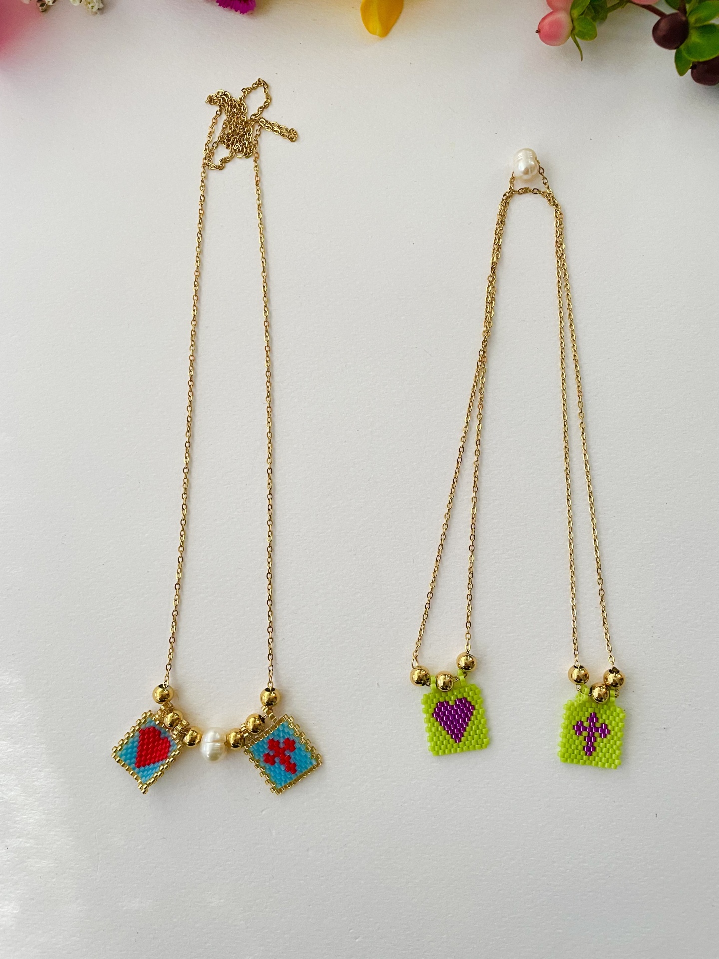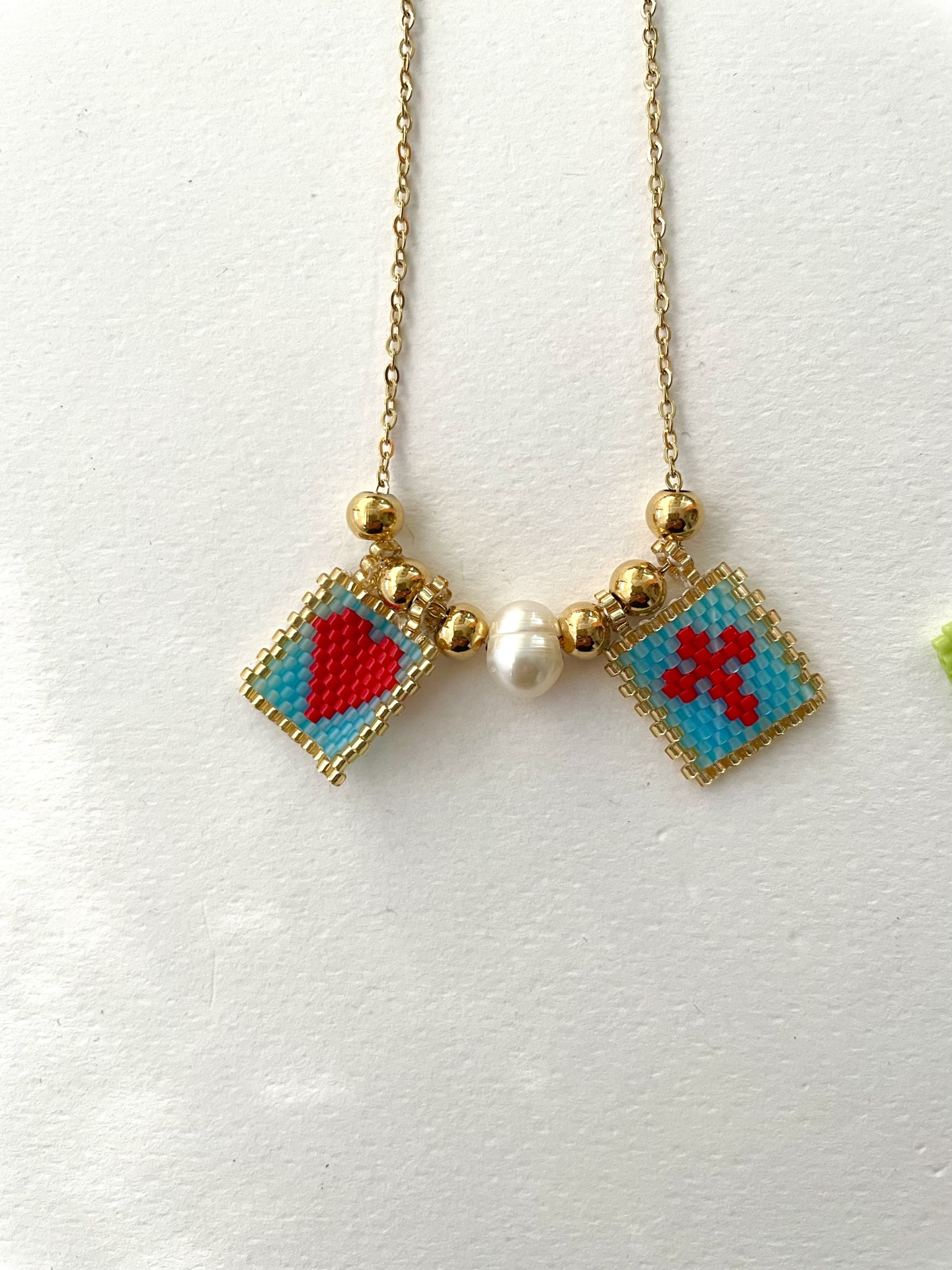 Home Colares Colar Escapulário com missangas japonesas e pérola barroca - Coração e cruz #12 Colar Escapulário com missangas japonesas e pérola barroca - Coração e cruz #12 Cor Verde Azul 12,50 € Desconto de %. IVA incluído. Comprar Contactar Adicionar à wishlist Colar com corrente inteira, com cerca de 65cm A última foto é exemplificativa de como se usa um escapulário. Aço Tags DouradosEscapulárioSantaCruzCoraçãoVermelhoMissangas Características Partilhar