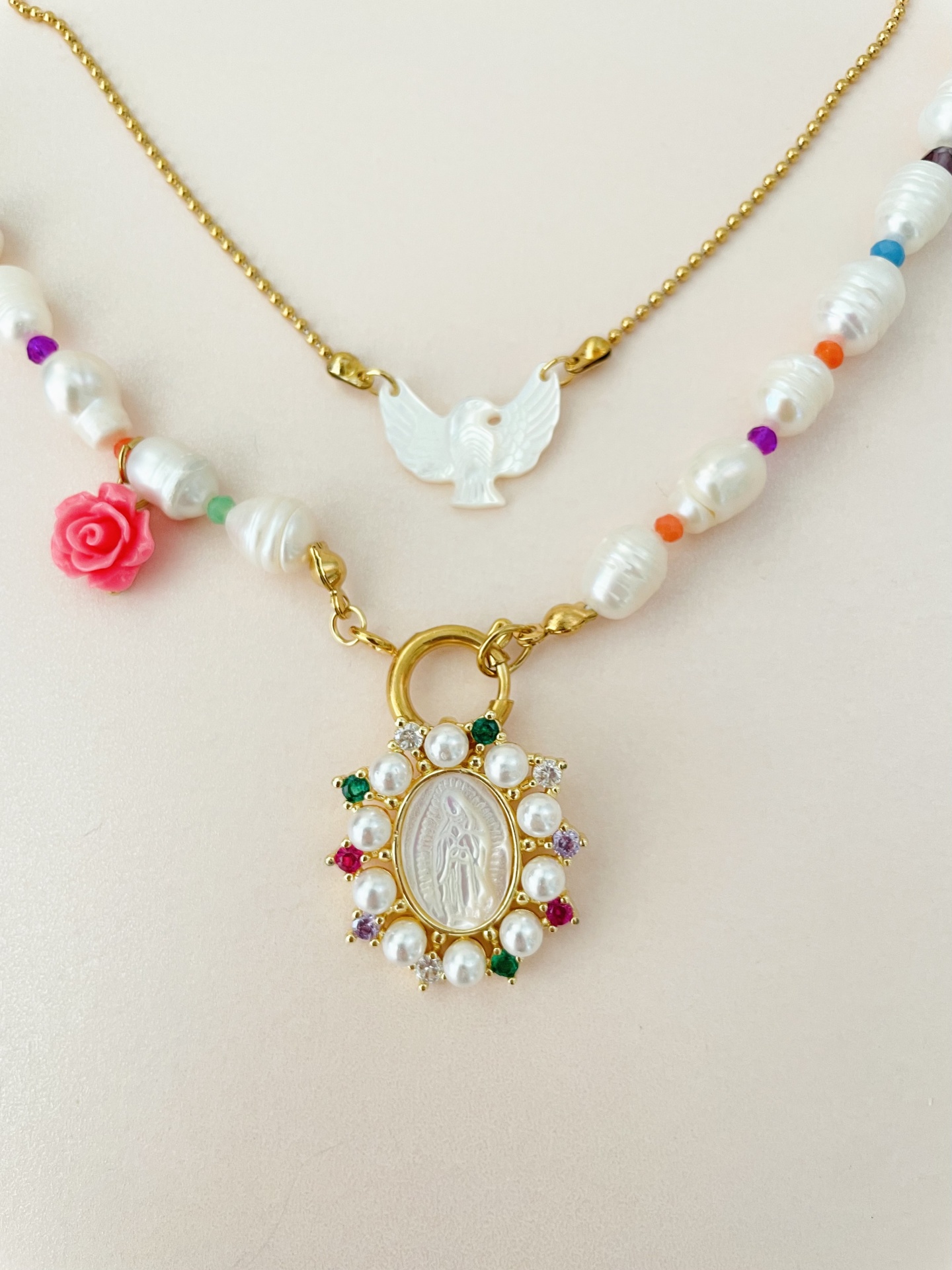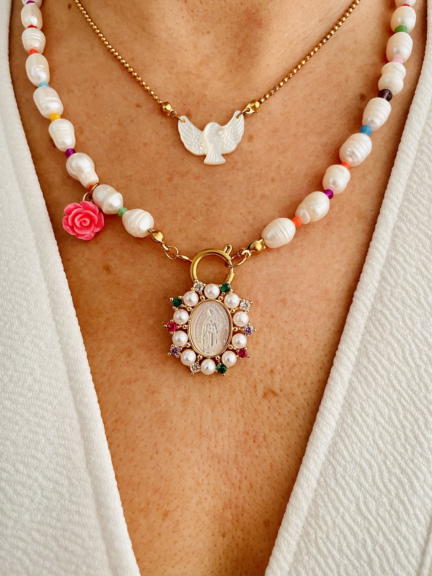Home Colares Colar Espiríto Santo ou colar pérolas com Santa Colar Espiríto Santo ou colar pérolas com Santa Modelo Menor Espírito Santo Maior pérolas e santa 10,00 € Desconto de %. IVA incluído. Comprar Contactar Adicionar à wishlist Colar menor mede 40cm + extensão - madrepérola e aço Colar maior mede 48cm - pérolas água doce, aço e pendente Santa em cobre com madrepérola Por favor escolha a opção pretendida Tags BrancoPedrasColaresCoraçãoPérolasSantasPedras naturaisSantaEspírito Santo Características Partilhar