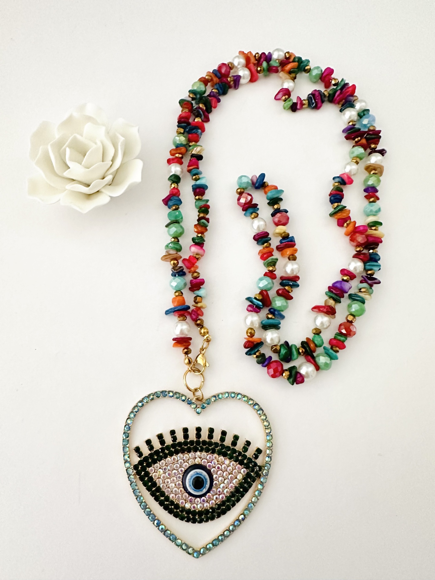 Home Colares Colar olho #4 Colar olho #4 14,00 € Desconto de %. IVA incluído. Comprar Contactar Adicionar à wishlist Mede 1m + pendente pedras naturais, pérolas sintéticas, hematite e aço - pendente em cobre com banho de ródio Tags ColaresPedras naturaisOlho Partilhar