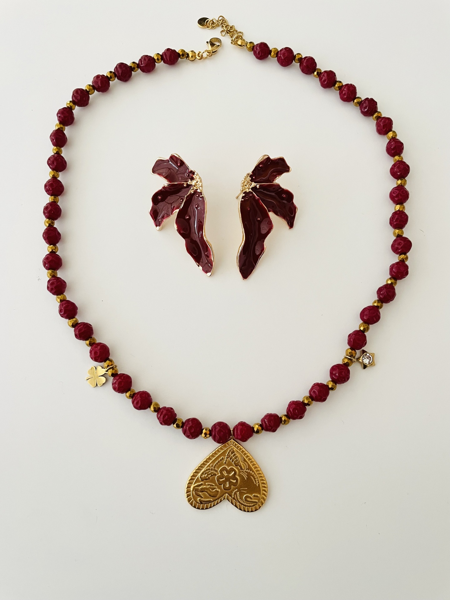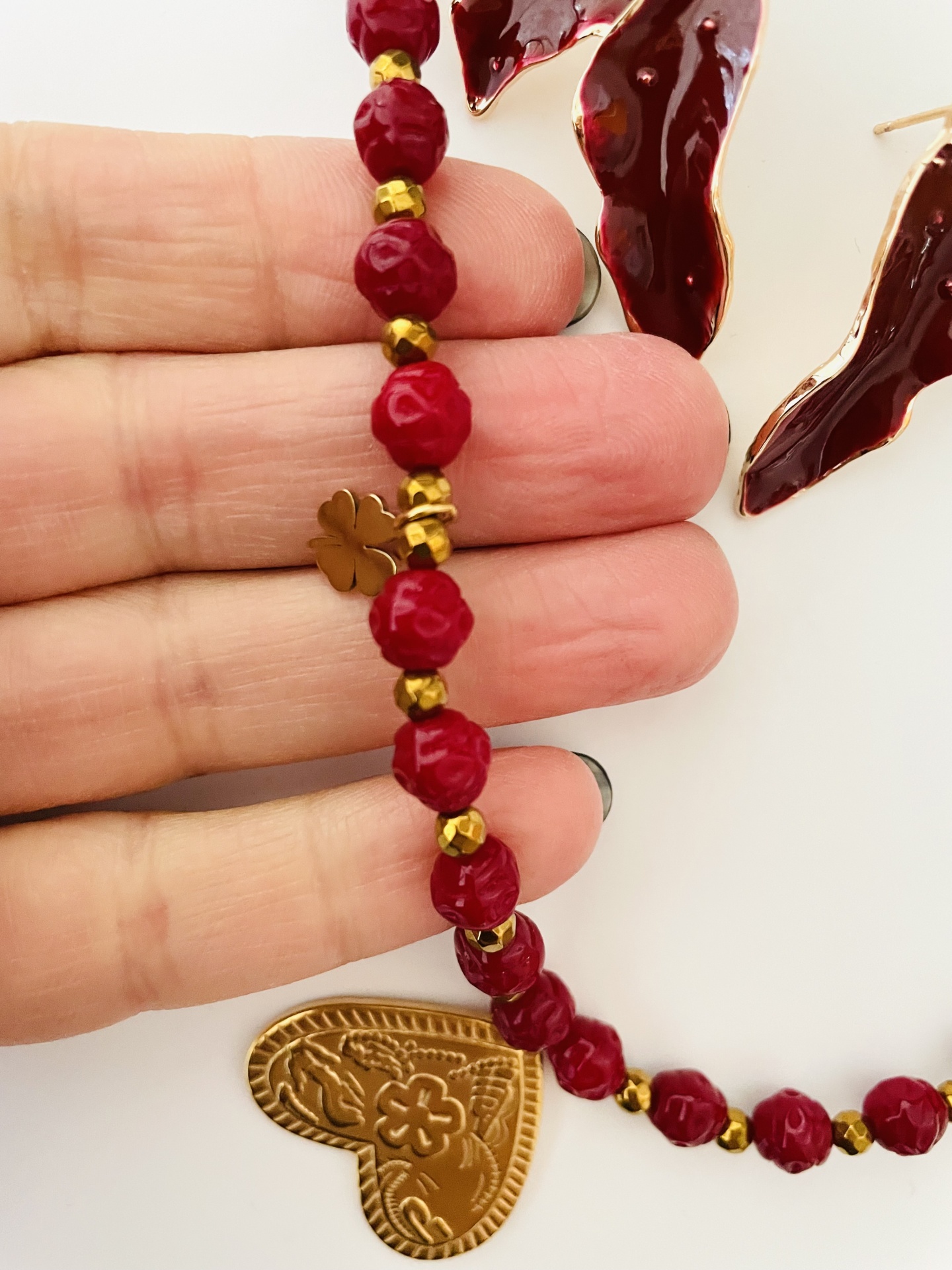 Home Colares Colar pedras naturais bordeaux - coração invertido Colar pedras naturais bordeaux - coração invertido 14,49 € Desconto de %. IVA incluído. Comprar Contactar Adicionar à wishlist Mede 49 cm + extensão Pedras naturais, hematite e aço Tags colarPedras naturaisCoraçãobordeauxcor de vinhoborgonha Partilhar