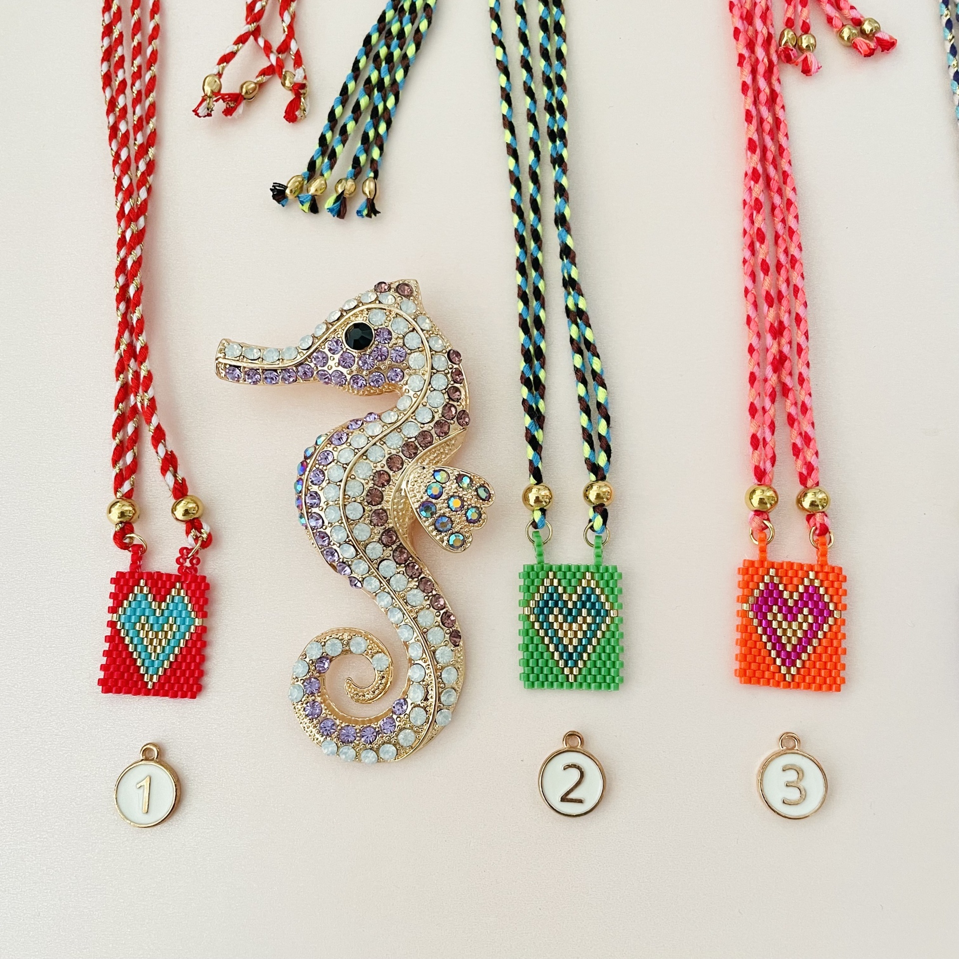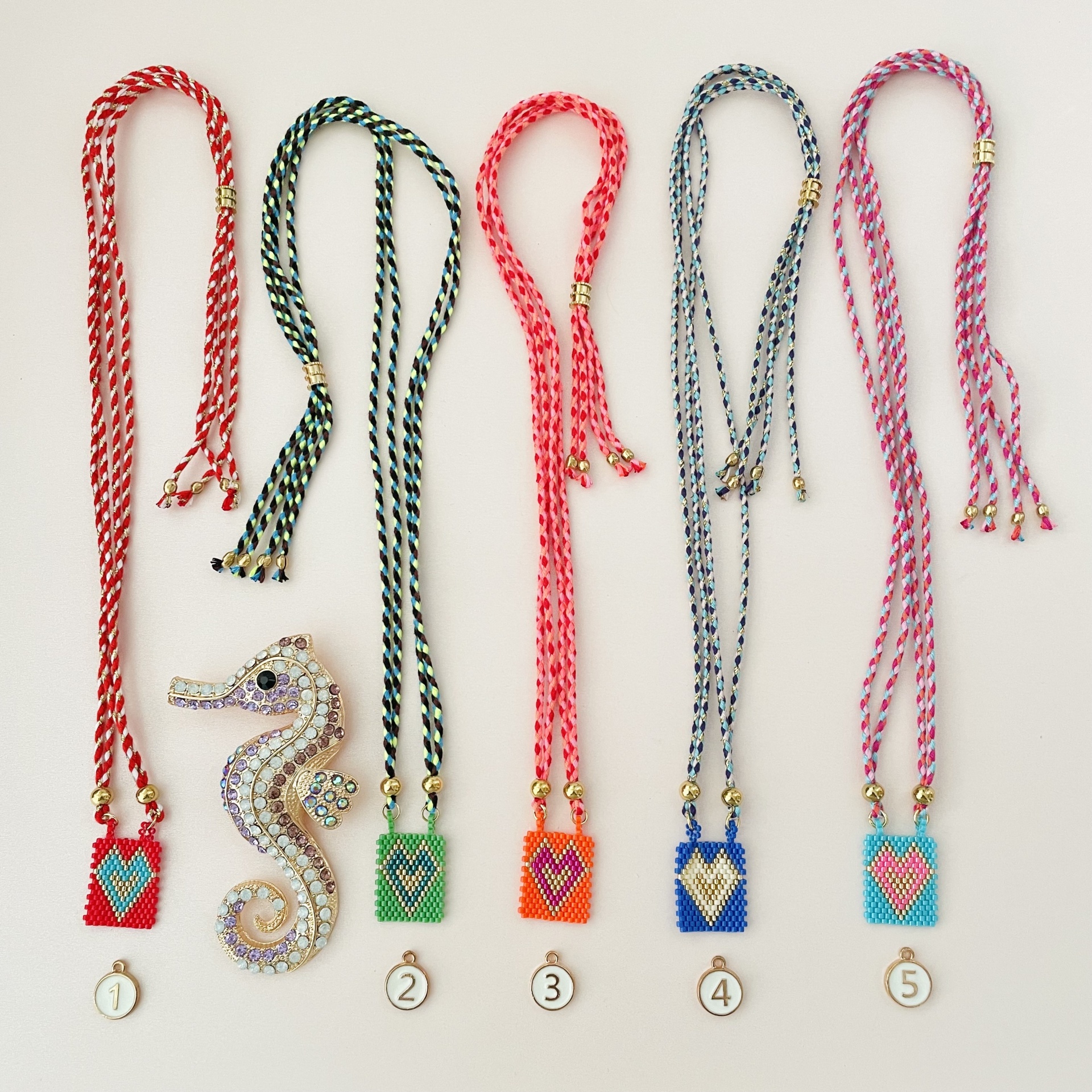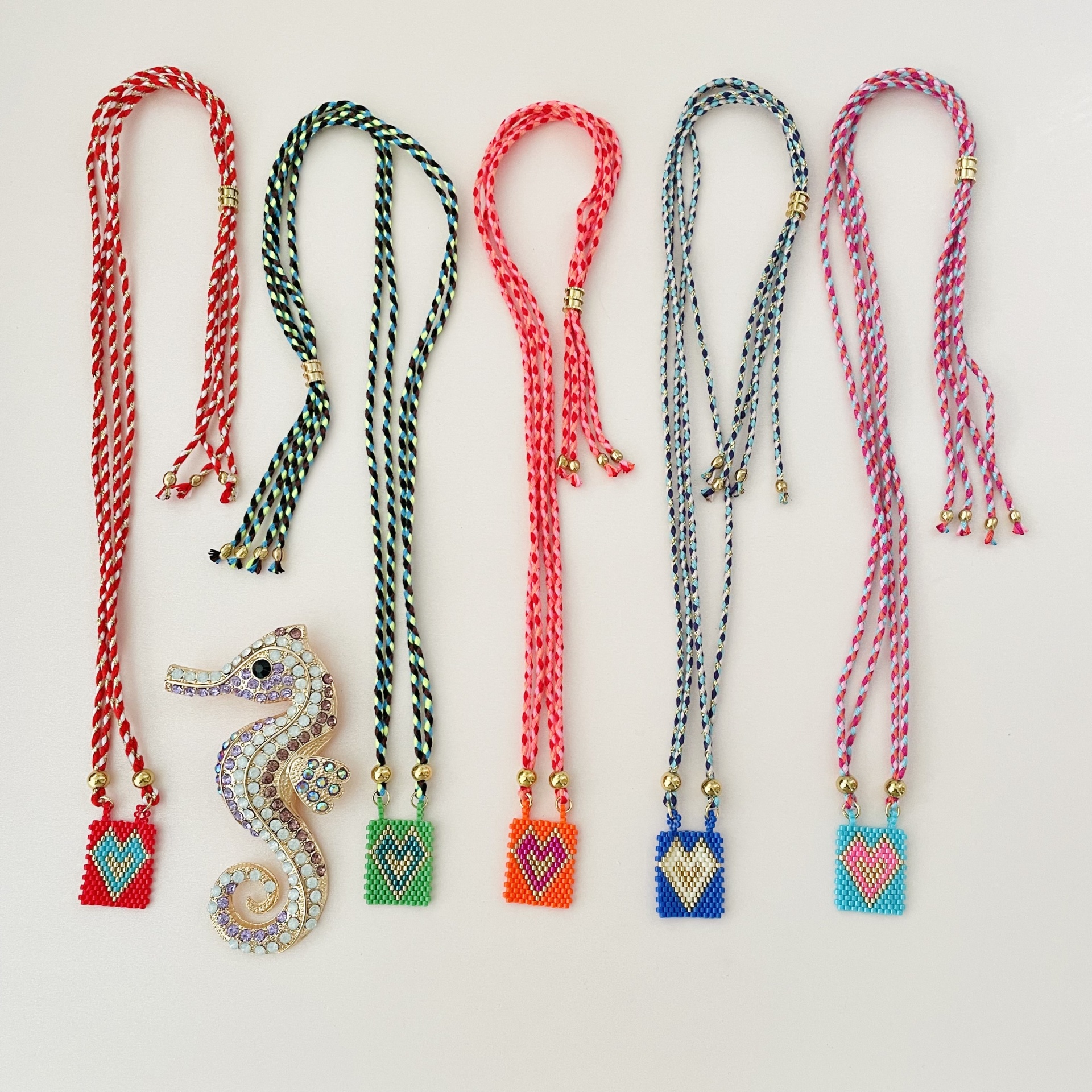 Home Colares Colares cordão #12 Colares cordão #12 modelo 1- vermelho 2 - verde 3 - laranja e rosa 4 - azul escuro 5 - azul e rosa 10,00 € Desconto de %. IVA incluído. Comprar Contactar Adicionar à wishlist Regulável até 75cm Pendente mede 3.5cm Algodão, aço e pendente em missangas japonesas Tags ColaresCordãoAçoPretoSagrado coração Características Partilhar