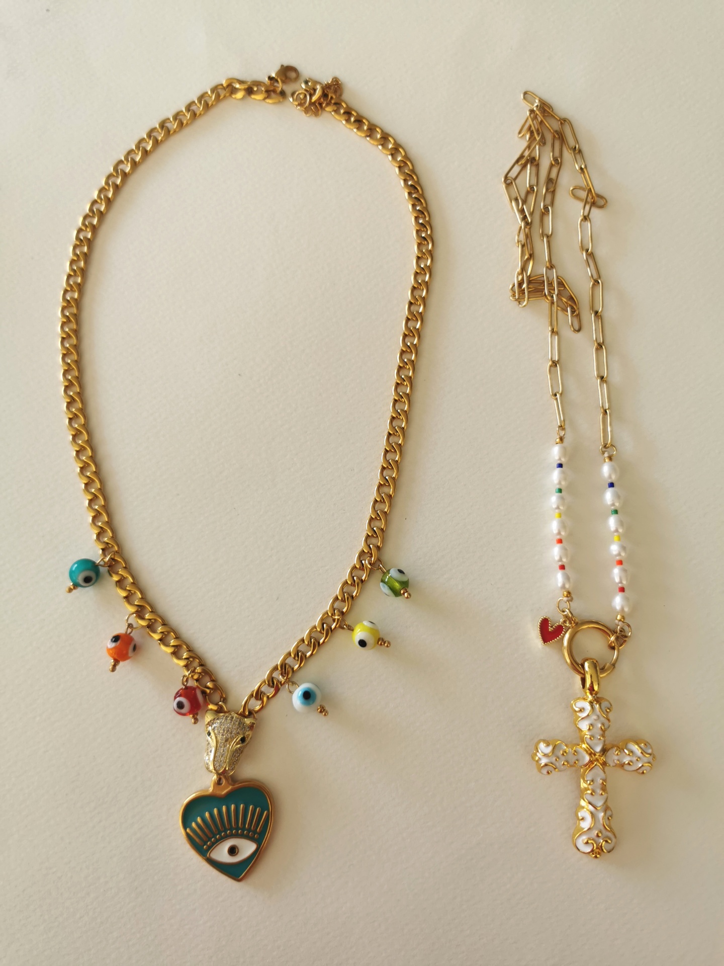 Home Colares Colares dourados Colares dourados Modelo Colar olho Colar cruz 13,00 € Desconto de %. IVA incluído. Comprar Contactar Adicionar à wishlist Colar do olho mede 50 cm. Aço. Colar da cruz mede 60 cm. Aço. Tags AçoColaresDouradosOlhoCruzPérolas Partilhar