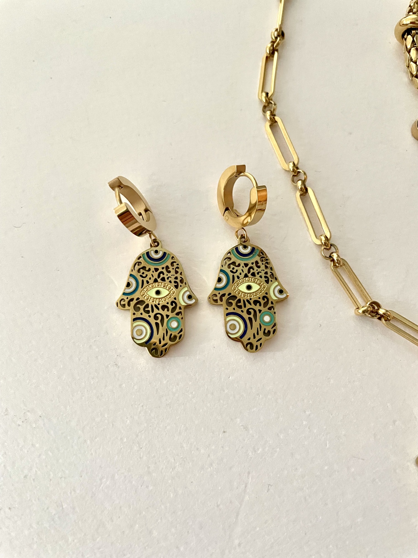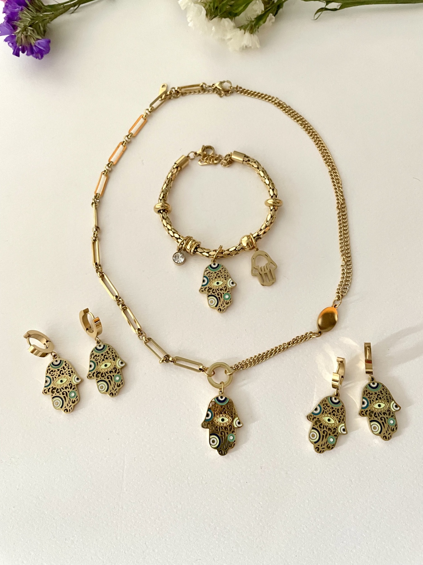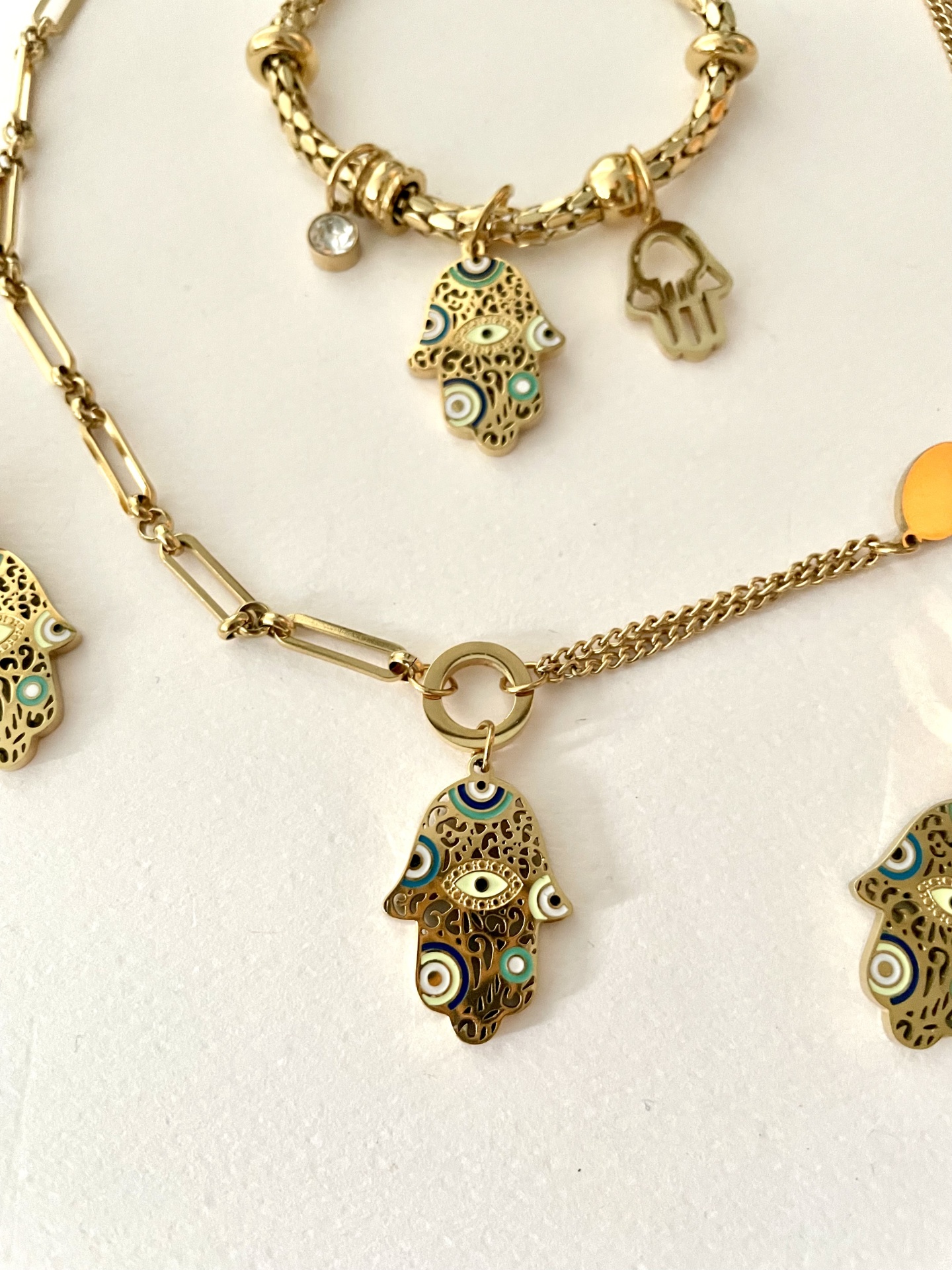 Home Colares Mão de Fátima Mão de Fátima Modelo Colar Brincos Pulseira 8,00 € Desconto de %. IVA incluído. Comprar Contactar Adicionar à wishlist Colar mede 45cm + extensão Brincos 4cm Pulseira 17cm + extensão Pf escolher o colar pretendido Aço Tags colarPedras naturaisAçoMão de FátimaBrincospulseiras Partilhar