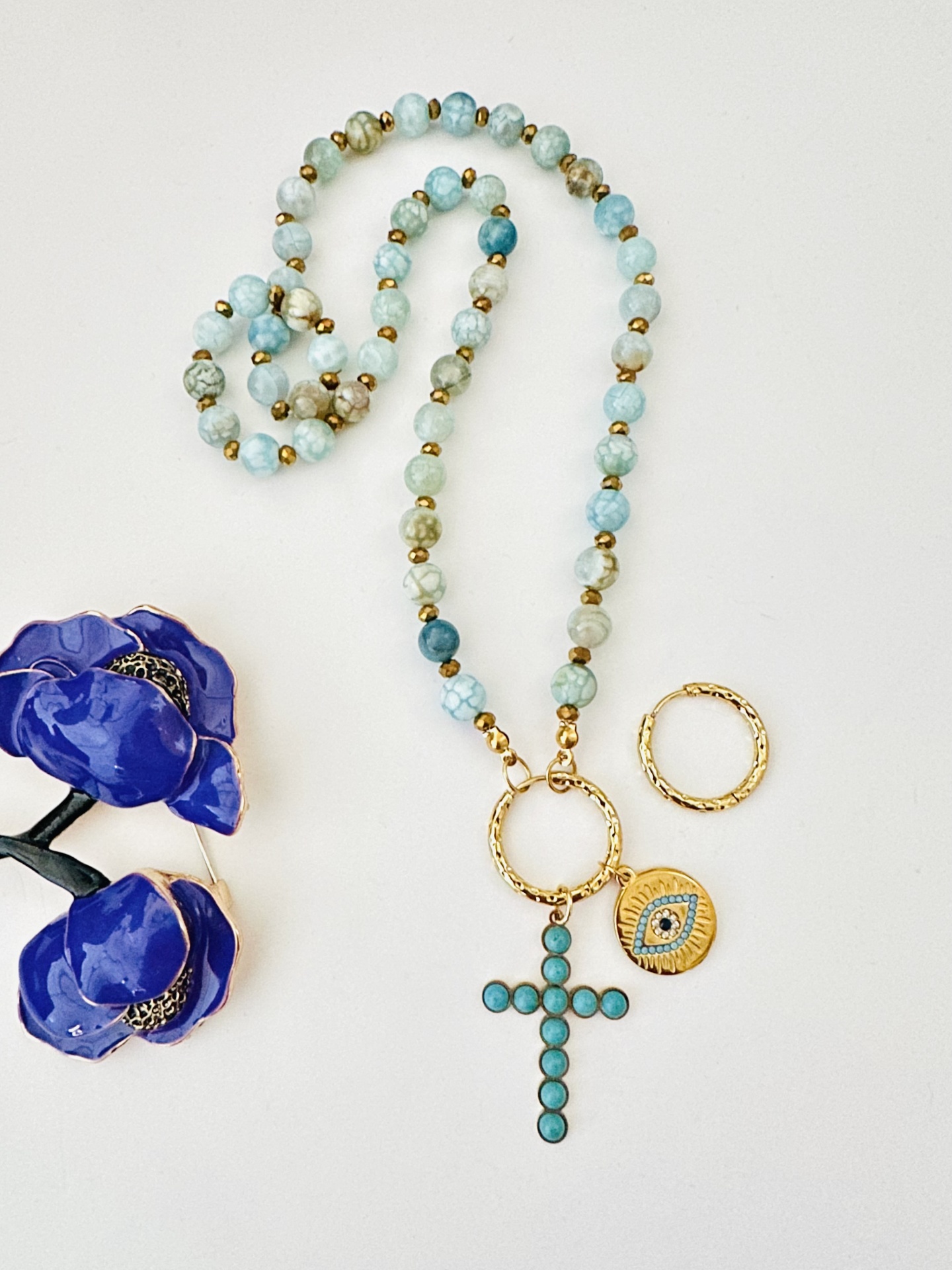 O valor inclui: colar + pendentes + 2 argolas (brincos). A argola abre facilmente e dá  para retirar os pendentes ou trocar. Pendentes também podem ser usados nas argolas (como brincos).
