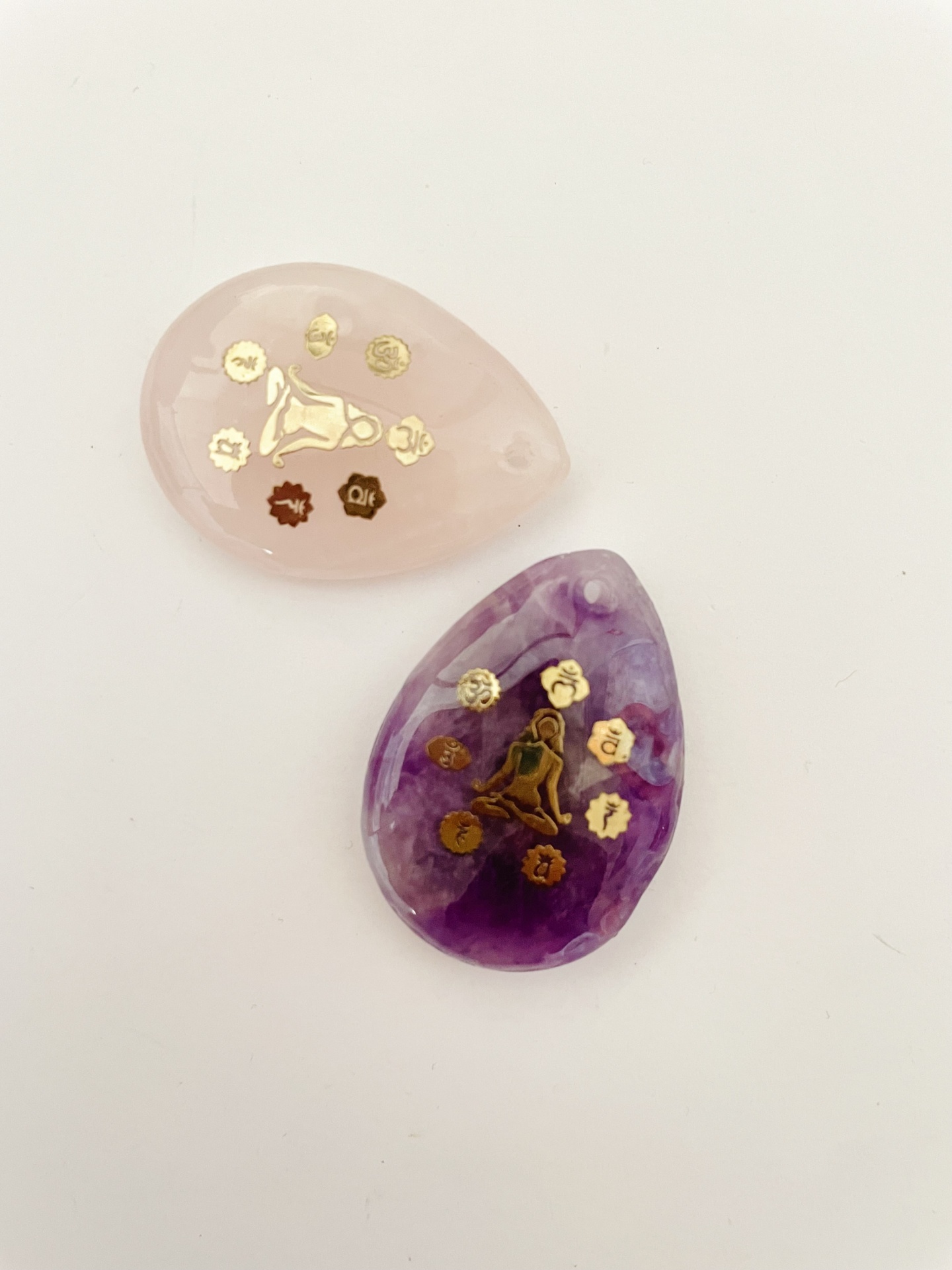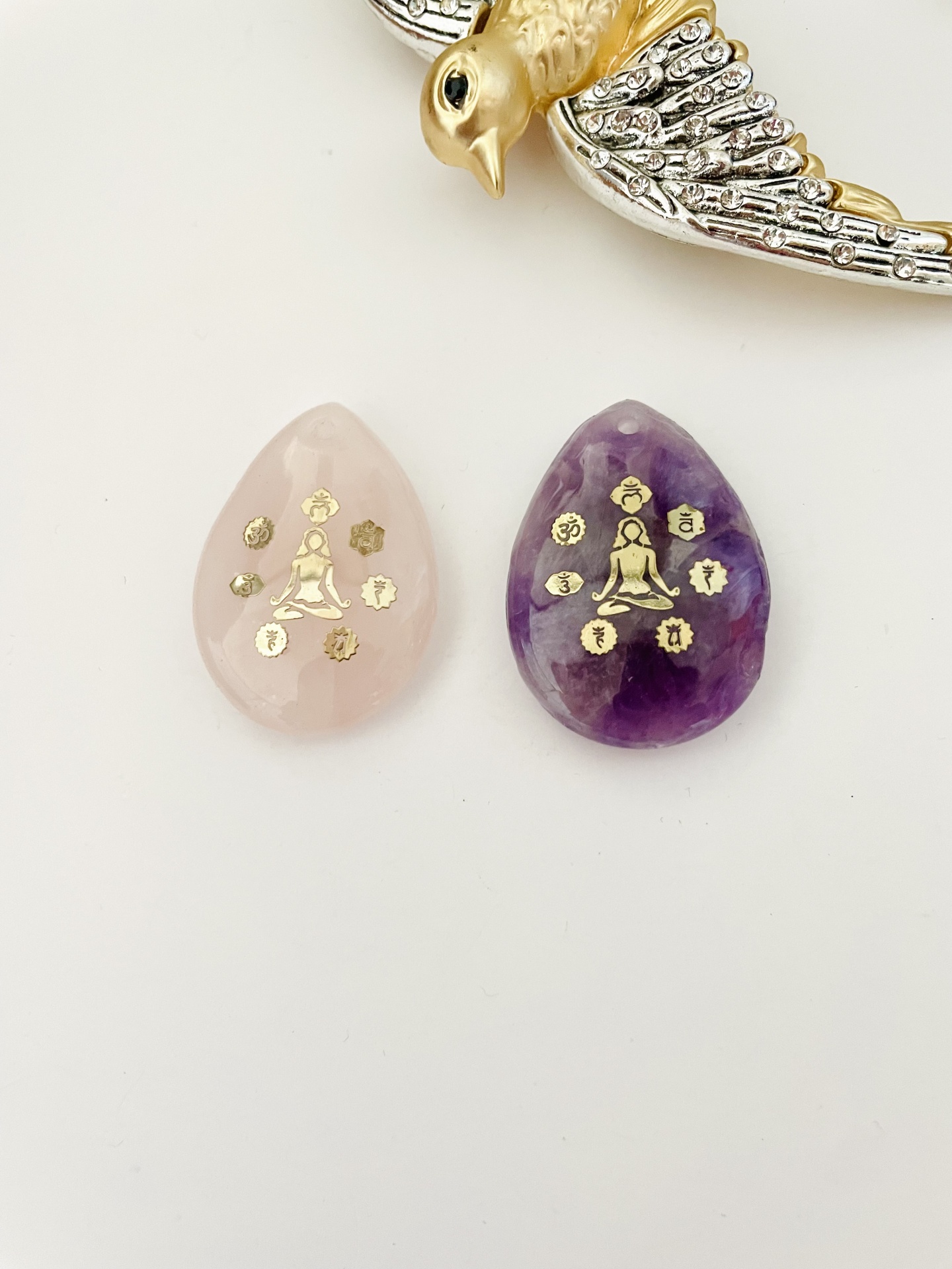 Pendentes em forma de gota - ametista e quartzo rosa