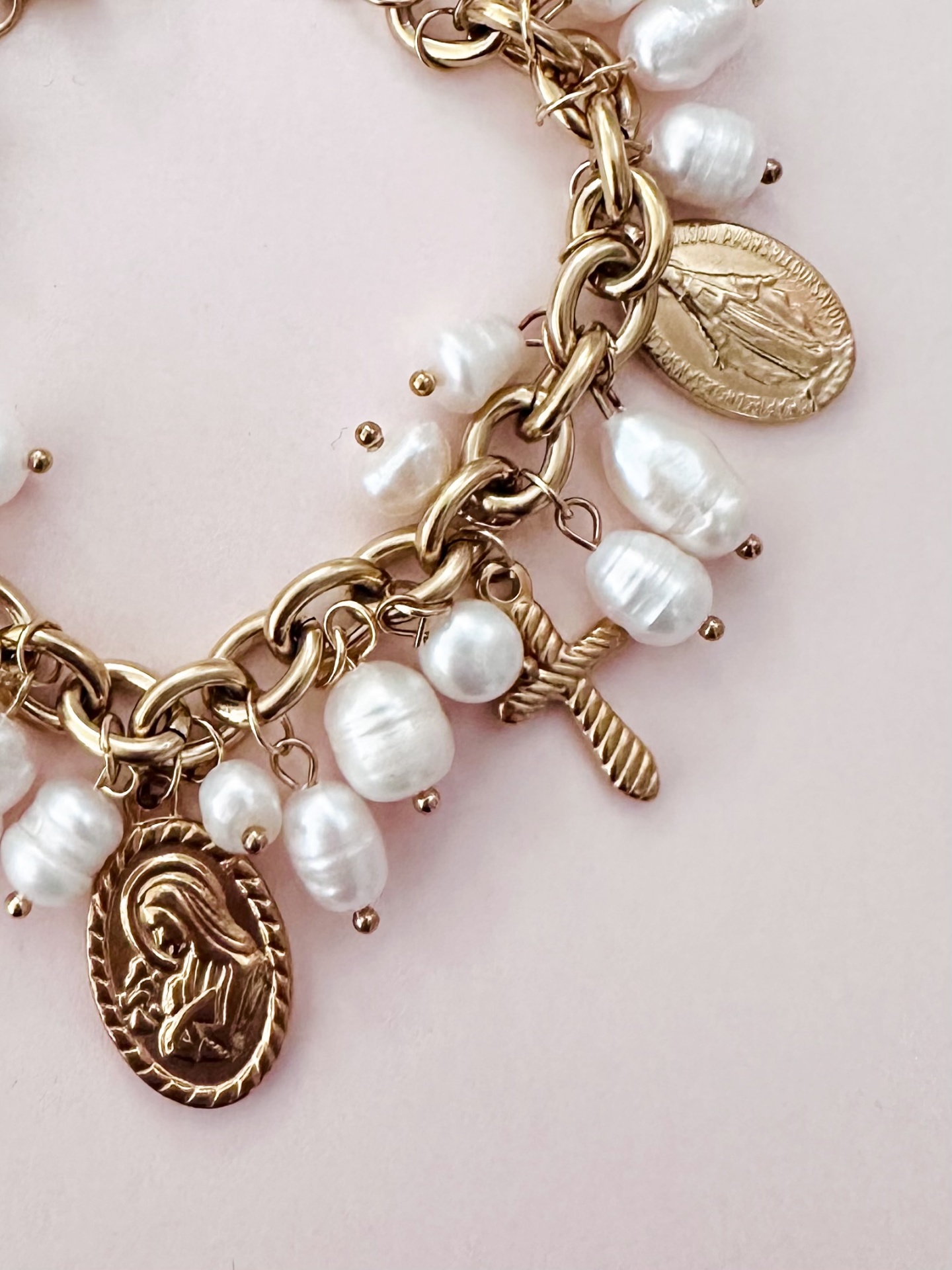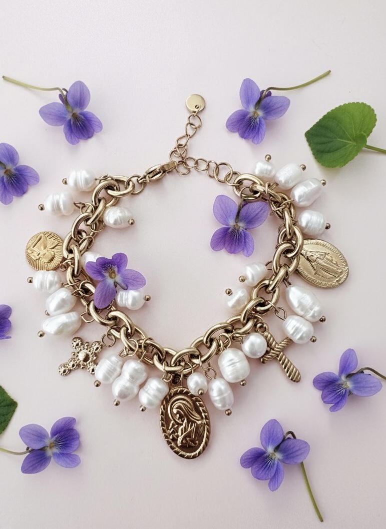 Home Pulseiras Pulseira Santos e Pérolas Pulseira Santos e Pérolas 11,99 € Desconto de %. IVA incluído. Comprar Contactar Adicionar à wishlist Mede 17cm + extensão - aço e pérolas água doce Aço Tags pulseirasDouradasCorrentes Partilhar