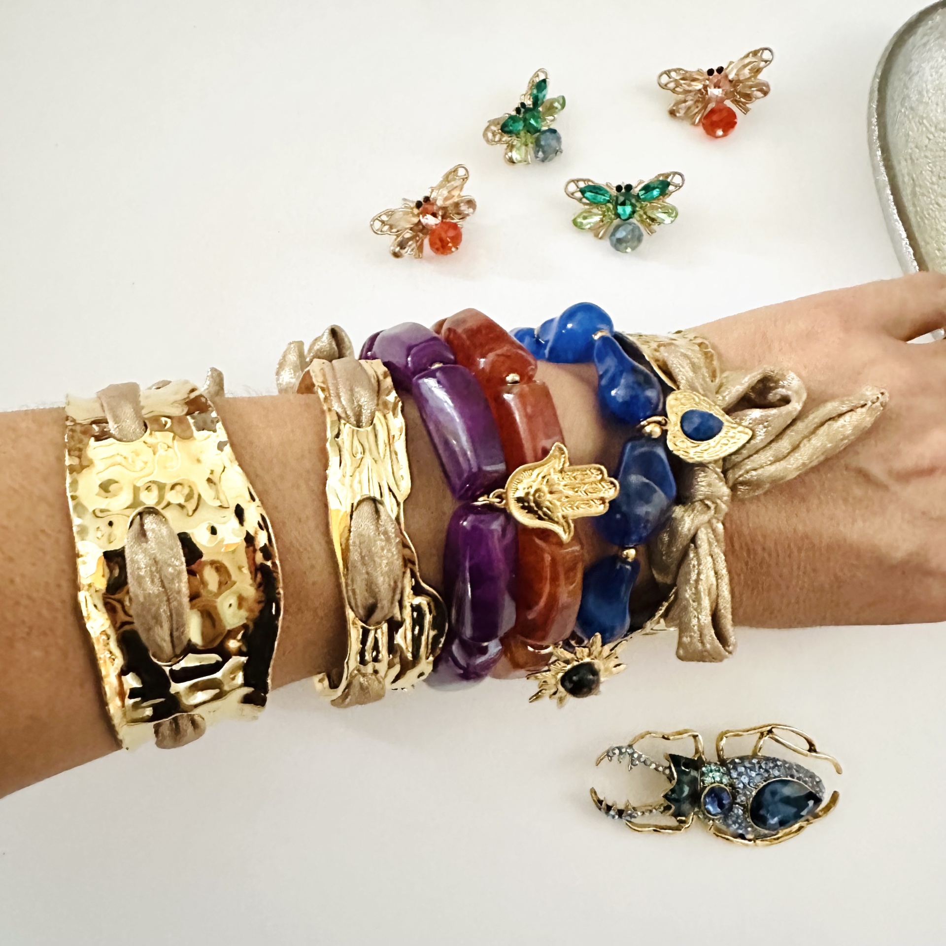 Home Pulseiras Pulseiras #109 Pulseiras #109 Modelo 1 2 3 4 5 7,00 € Desconto de %. IVA incluído. Comprar Contactar Adicionar à wishlist Modelo: 1, 3 e 4 - Elásticas- Servem a pulso 17/19cm - resina e aço Bangles com laço: aço Larga: 3cm e estreita mede 2cm (largura) Tags pulseirasDouradasCorrentesCristaisBangleAzulBeringelaCastanhoâmbarLaçoRoxo Partilhar