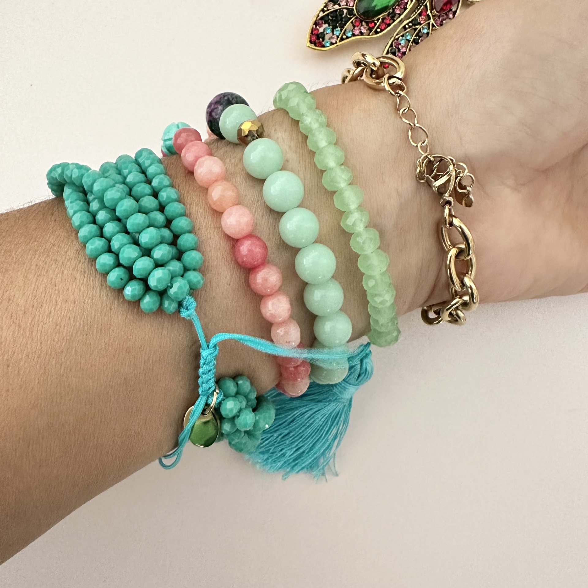 Home Pulseiras Pulseiras #50 Pulseiras #50 8,99 € Desconto de %. IVA incluído. O produto encontra-se sem stock. Adicionar à wishlist Mod 1: cristais . Ajustável Mod 2, 3 e 4 - pedras naturais, cristais e aço Mod 5 - Elefante em cobre e corrente em aço - 17cm + extensão Tags pulseirasDouradasCorrentesCristaisCoralPedras naturaisVerdeRosaElefante Partilhar