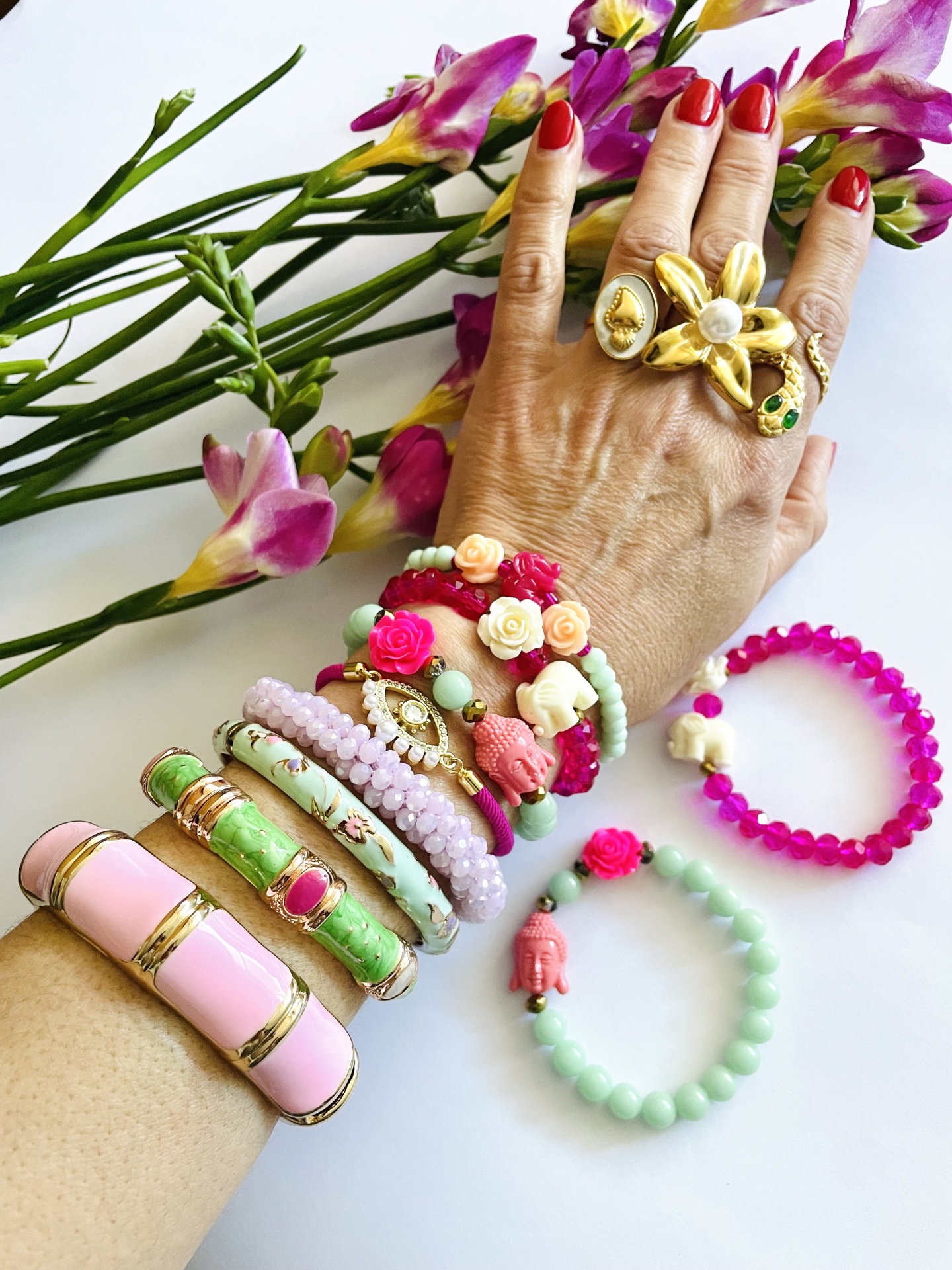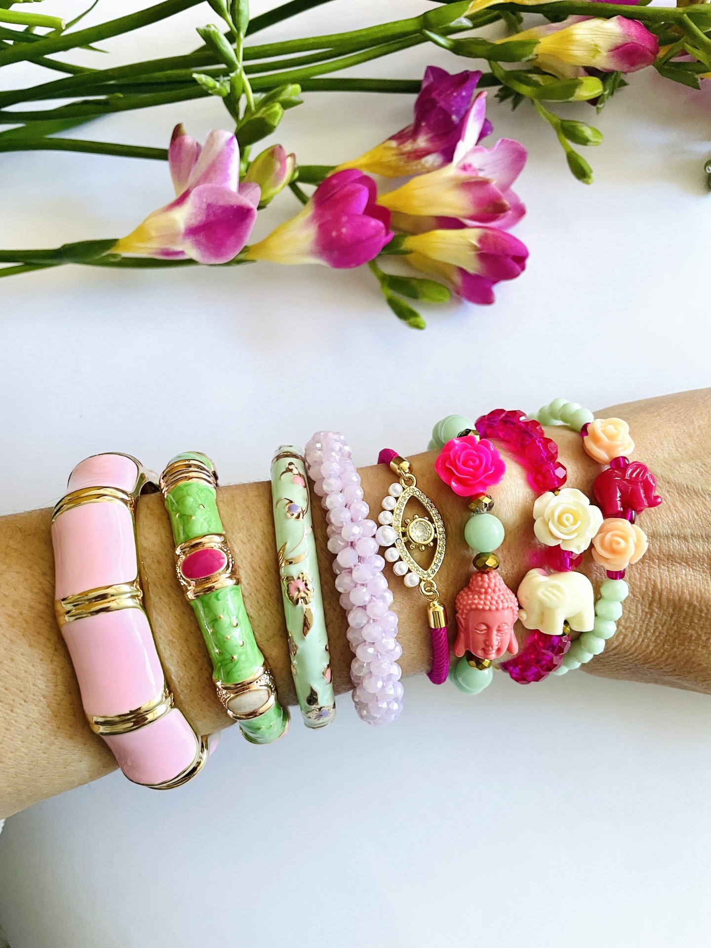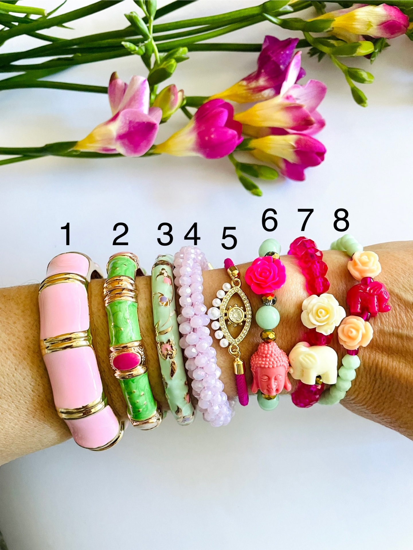 Home Pulseiras Pulseiras #127 Pulseiras #127 Modelo 1 2 3 4 5 6 7 8 7,49 € Desconto de %. IVA incluído. Comprar Contactar Adicionar à wishlist Bangles: 6cm diâmetro. Estreita 0.8cm largura . Larga: 1.5cm largura - cobre Cristais: servem a pulso 17/18cm - elásticas Tags pulseirasDouradasCristaisRosaBrancoAzulElefante Partilhar
