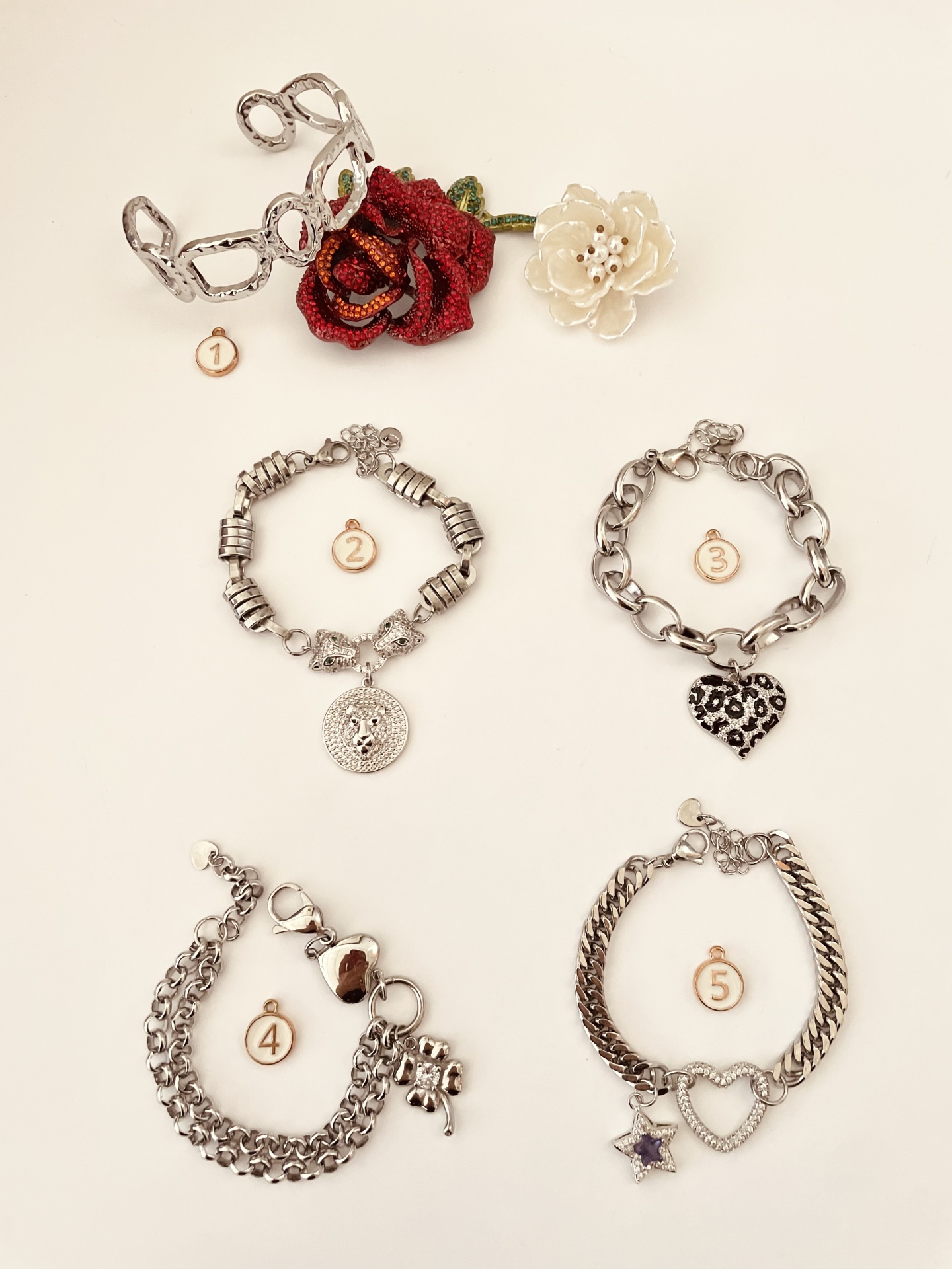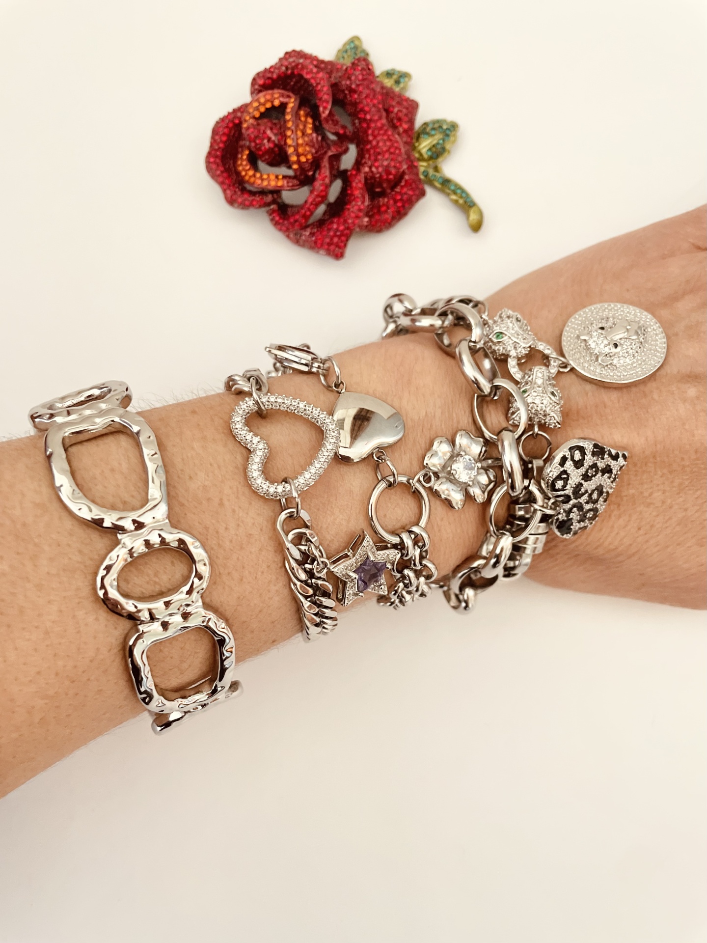 Home Pulseiras Pulseiras prateadas #64 Pulseiras prateadas #64 Modelo 1 2 3 4 5 8,50 € Desconto de %. IVA incluído. Comprar Contactar Adicionar à wishlist Medem 17cm + extensão Mod 1 e 4 - aço Mod 2, 3 e 5 - pendentes aço e correntes em aço Tags pulseirasBanglePrateadasCoraçãoPérolas Partilhar